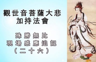 观世音菩萨大悲加持法会——殊胜无比现场感应追记(二十六) 2016年十月份,我有幸参加了华藏寺住持法师主持的《观世音菩萨大悲心加持法会》,开始之初,我按照法师交代的动作去做,闭上眼睛,让自己身…